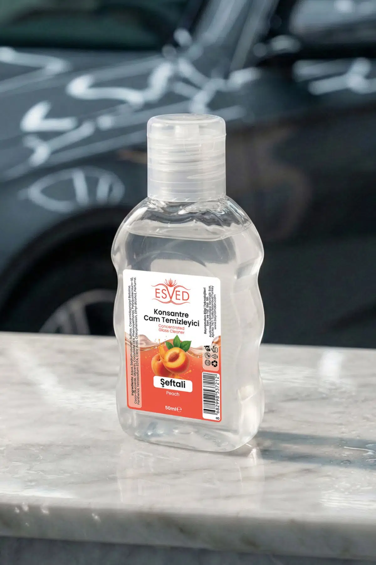 esved cam suyu, şeftali kokulu cam suyu, konsantre cam temizleme sabunu, oto cam suyu 50 ml, oto bakım ürünleri, şeftali aromalı cam temizleyici, 10’lu konsantre cam suyu
